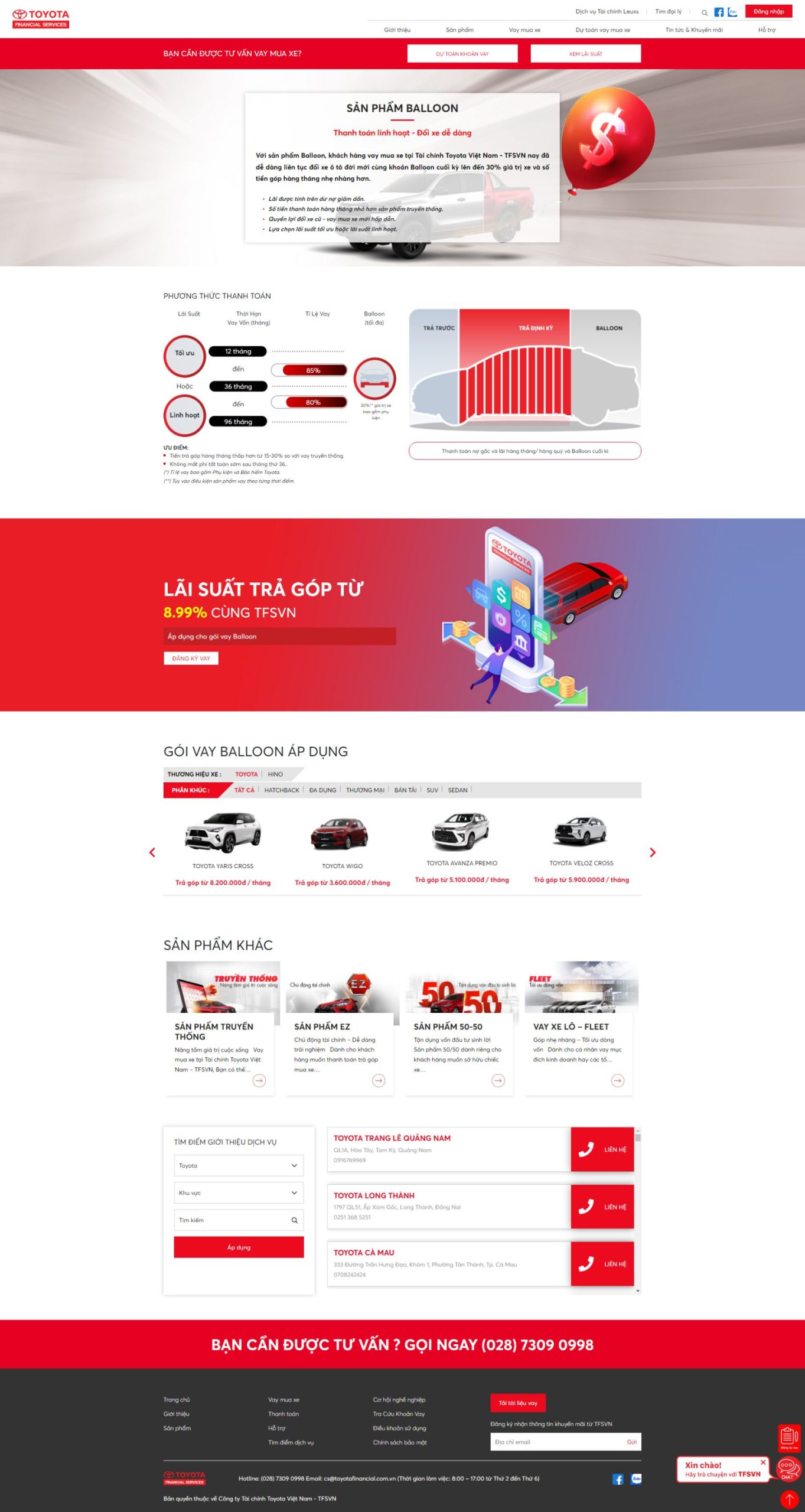 Với sản phẩm Tài chính Toyota Balloon, khách hàng vay mua xe tại Tài chính Toyota Việt Nam – TFSVN nay đã dễ dàng liên tục đổi xe ô tô đời mới cùng khoản Balloon cuối kỳ lên đến 30% giá trị xe và số tiền góp hàng tháng nhẹ nhàng hơn.