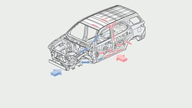 Khung xe có các vùng co rụm phía trước, phía sau giúp hấp thụ tốt các xung lực va đập, ngoài ra các thanh tăng cứng bên sườn xe làm giảm biến dạng khoang..