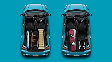 Hàng ghế đầu với thiết kế ôm sát. Hàng ghế sau của xe có thể gập phẳng với mặt sàn giúp tăng kích thước khoang chứa đồ.
